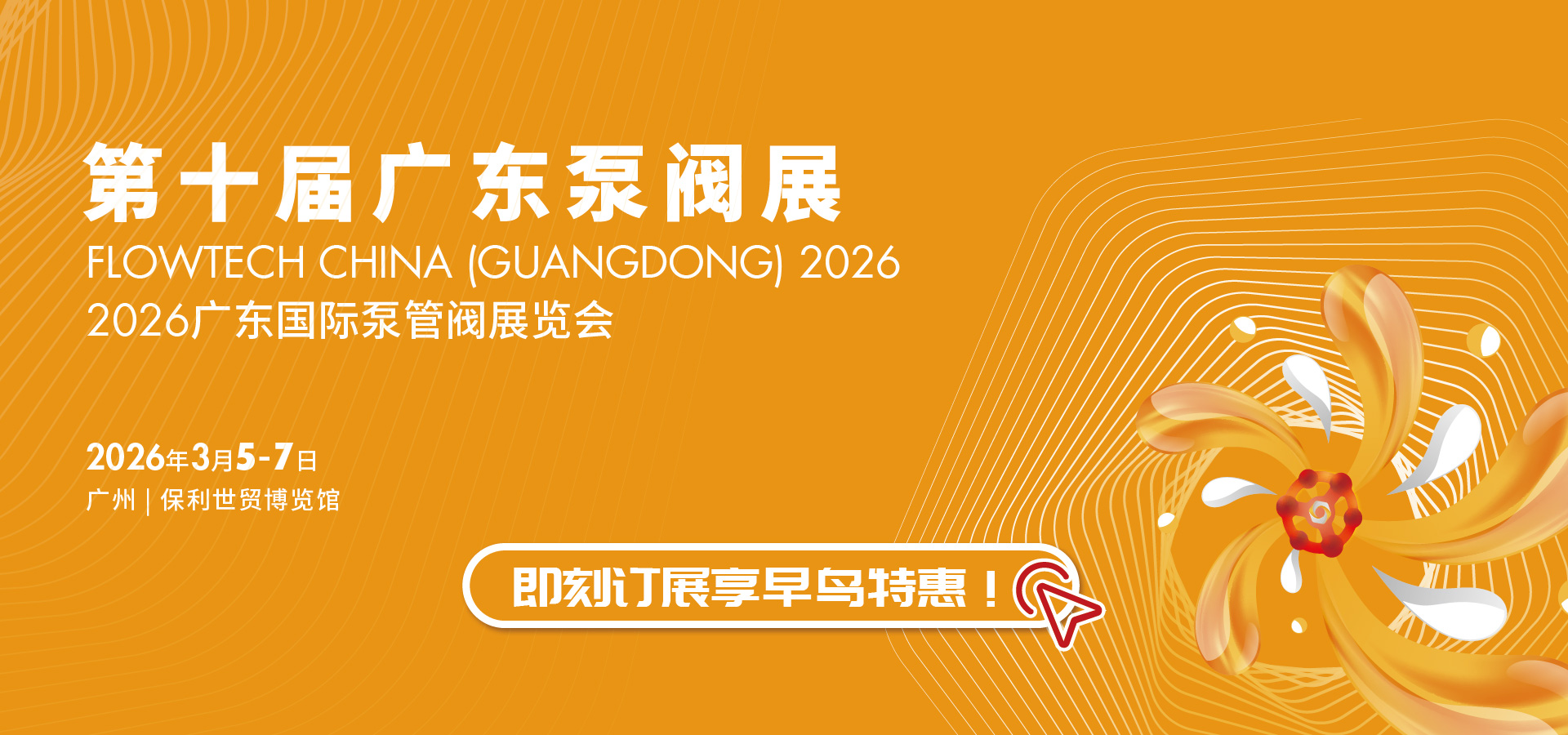 第十屆廣東泵閥展將于2026年3月5-7日在廣州丨保利世貿博覽館盛大啟幕!展覽面積達36,000平方米,預計將匯聚超20,000名專業觀眾,吸引800余家優質展商踴躍參展。
